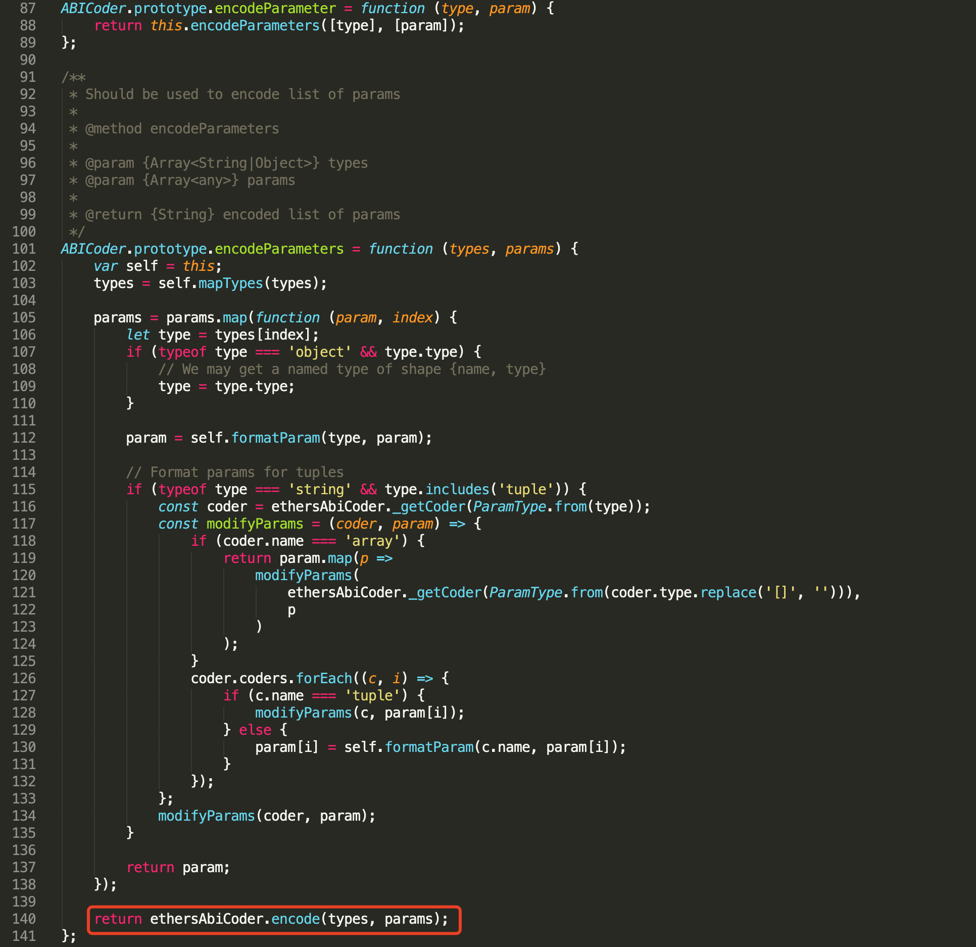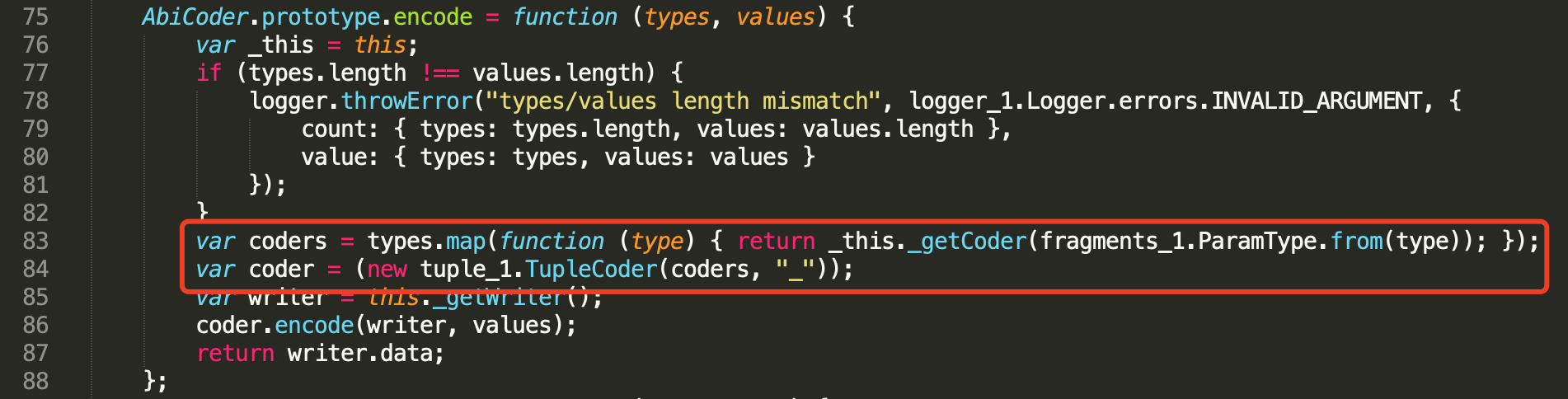 大部分代码主要是对object和string类型的参数格式化处理,关键在最后返回的ethersAbiCoder.encode函数