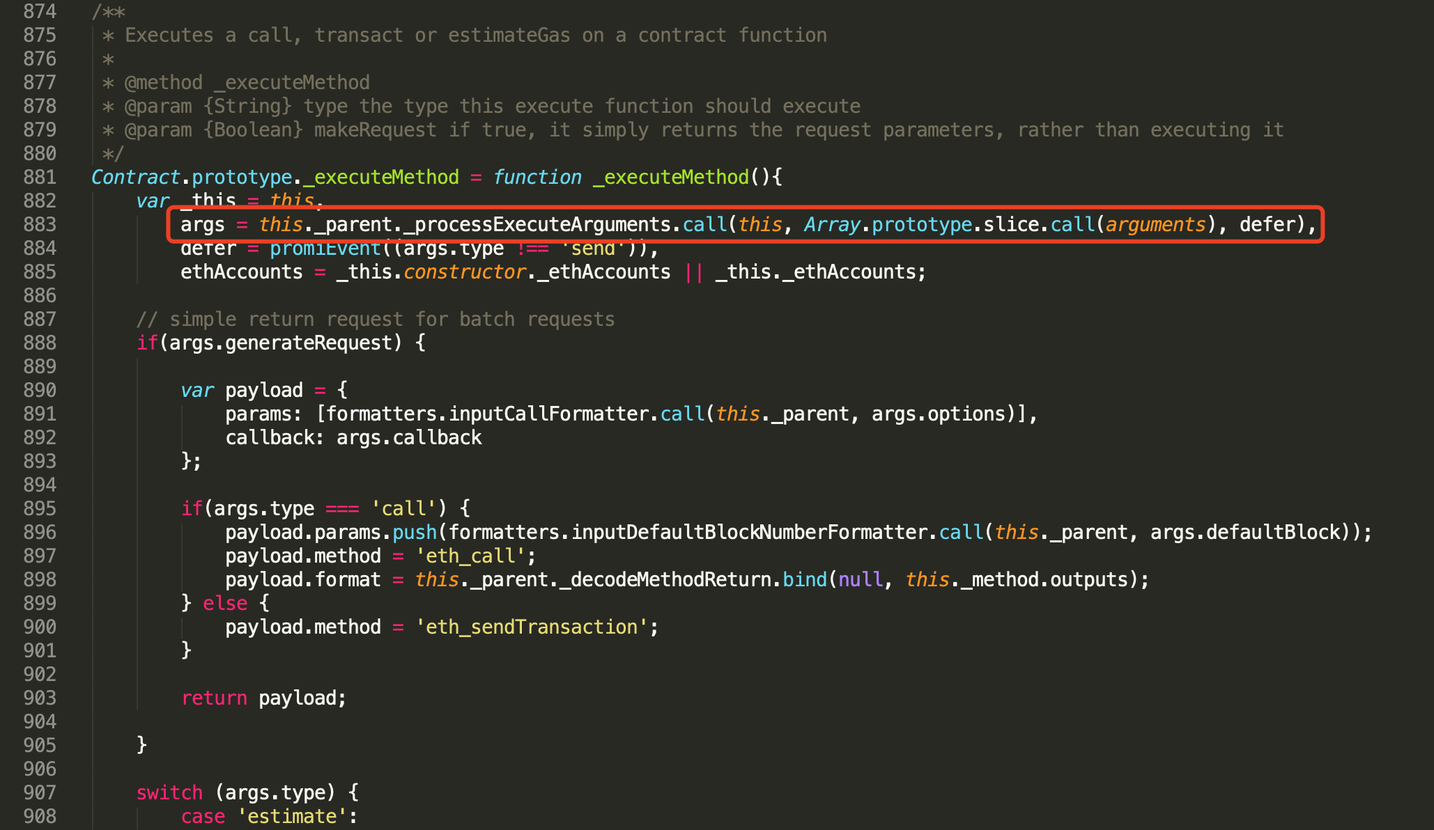 合约方法调用的相关代码在web3.js/packages/web3-eth-contract/src/index.js中