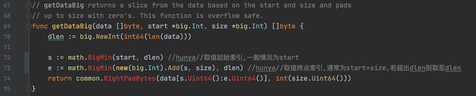 其中涉及到的另外两个函数math.BigMin和common.RightPadBytes如下: