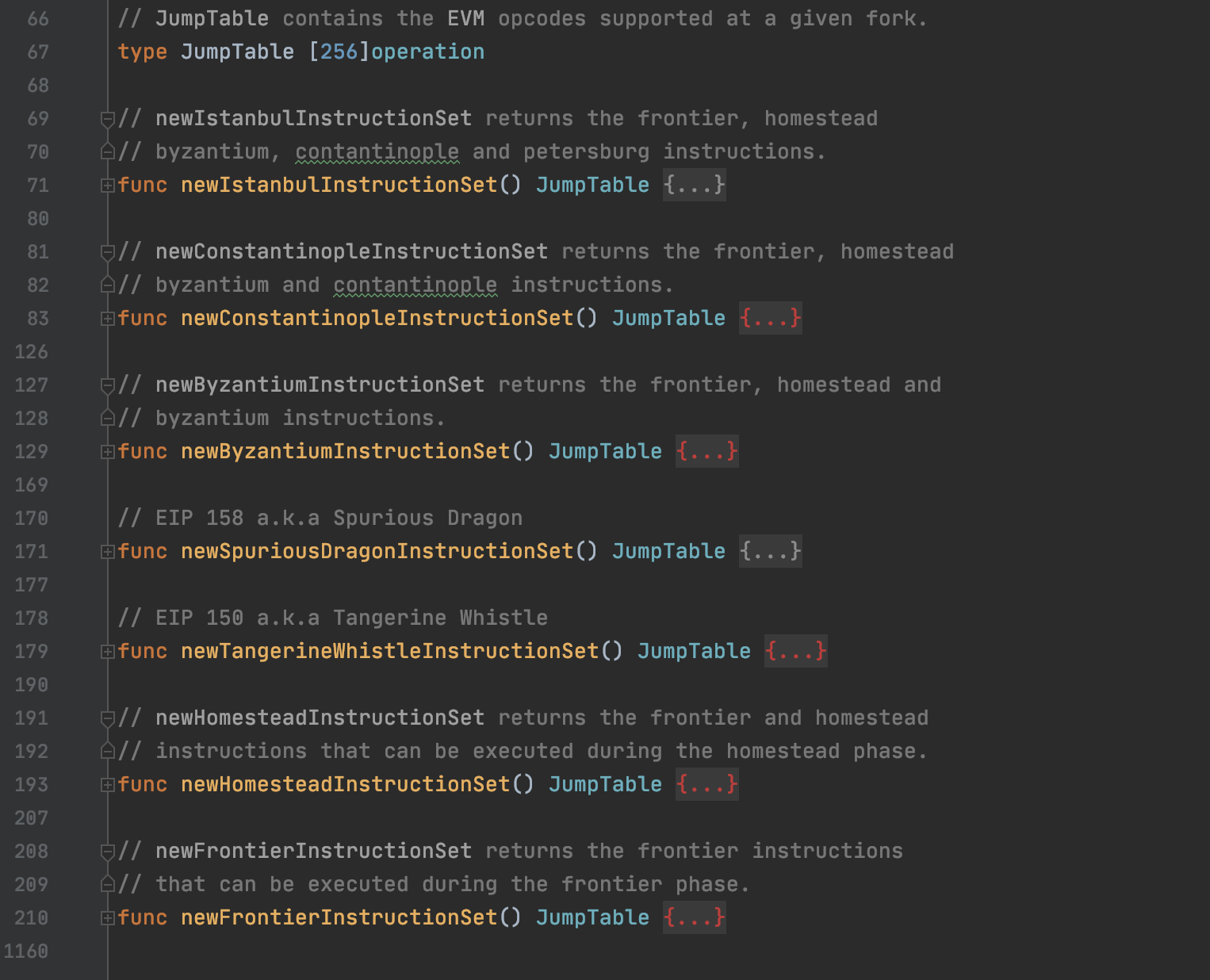 jump_table.go中还定义了JumpTable和多种不同的指令集