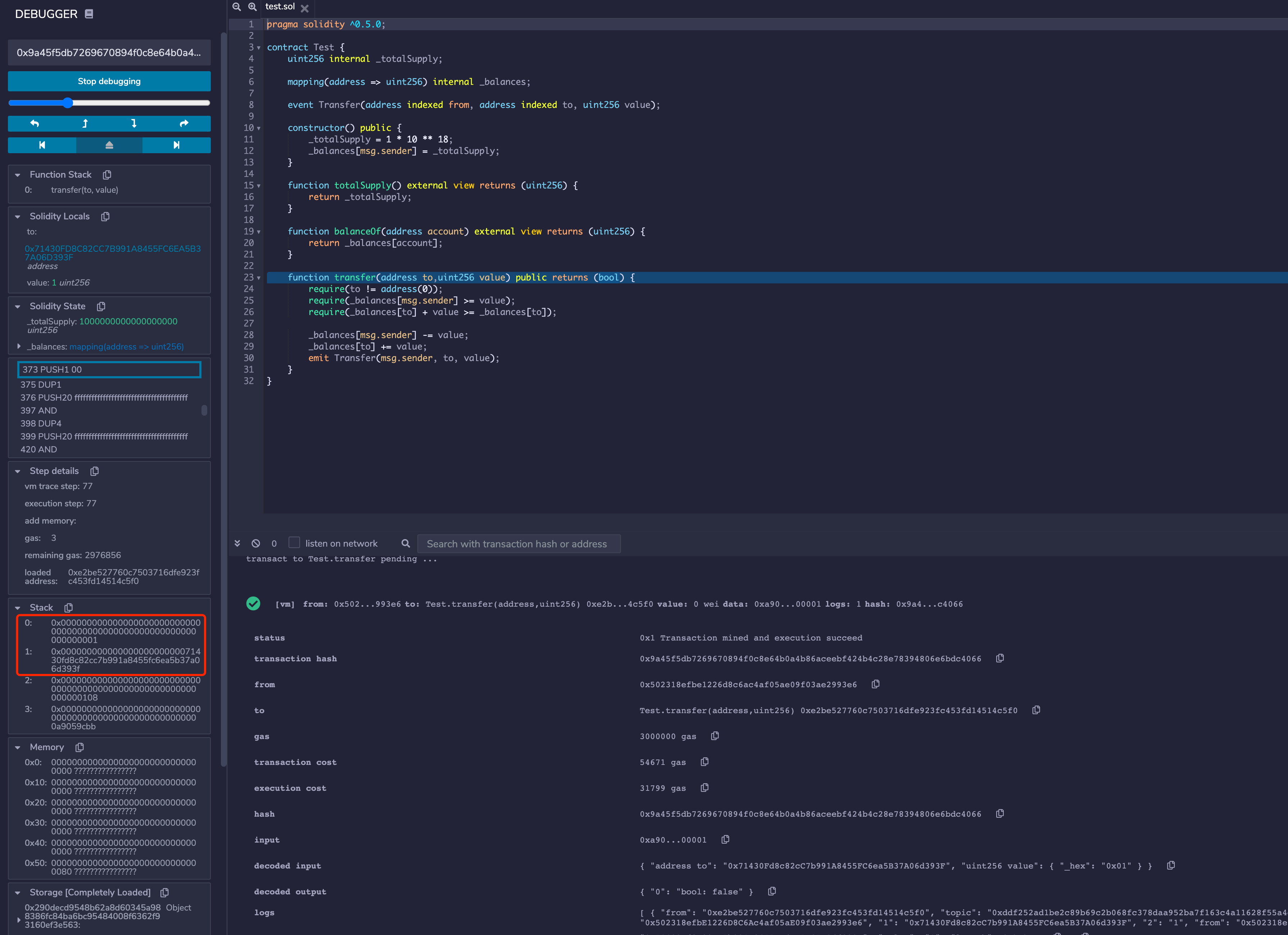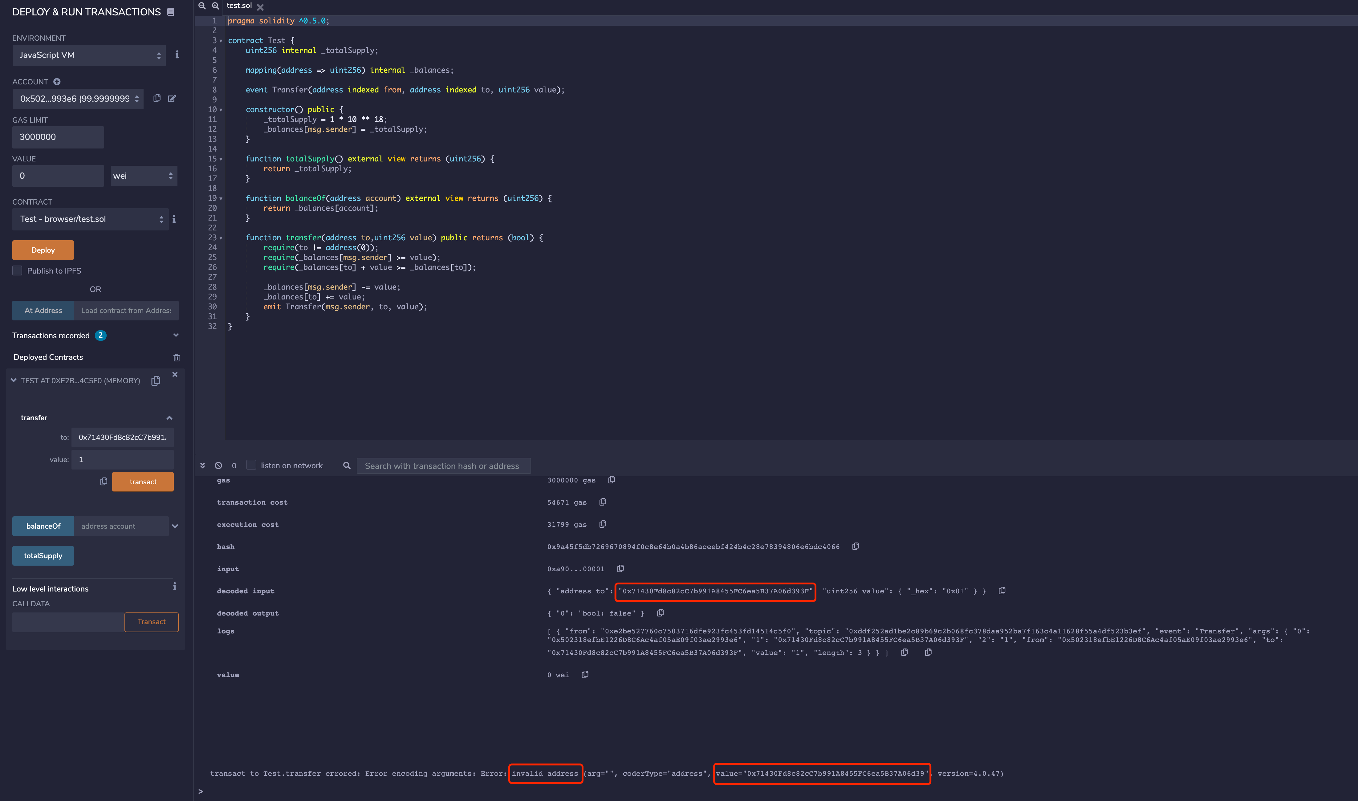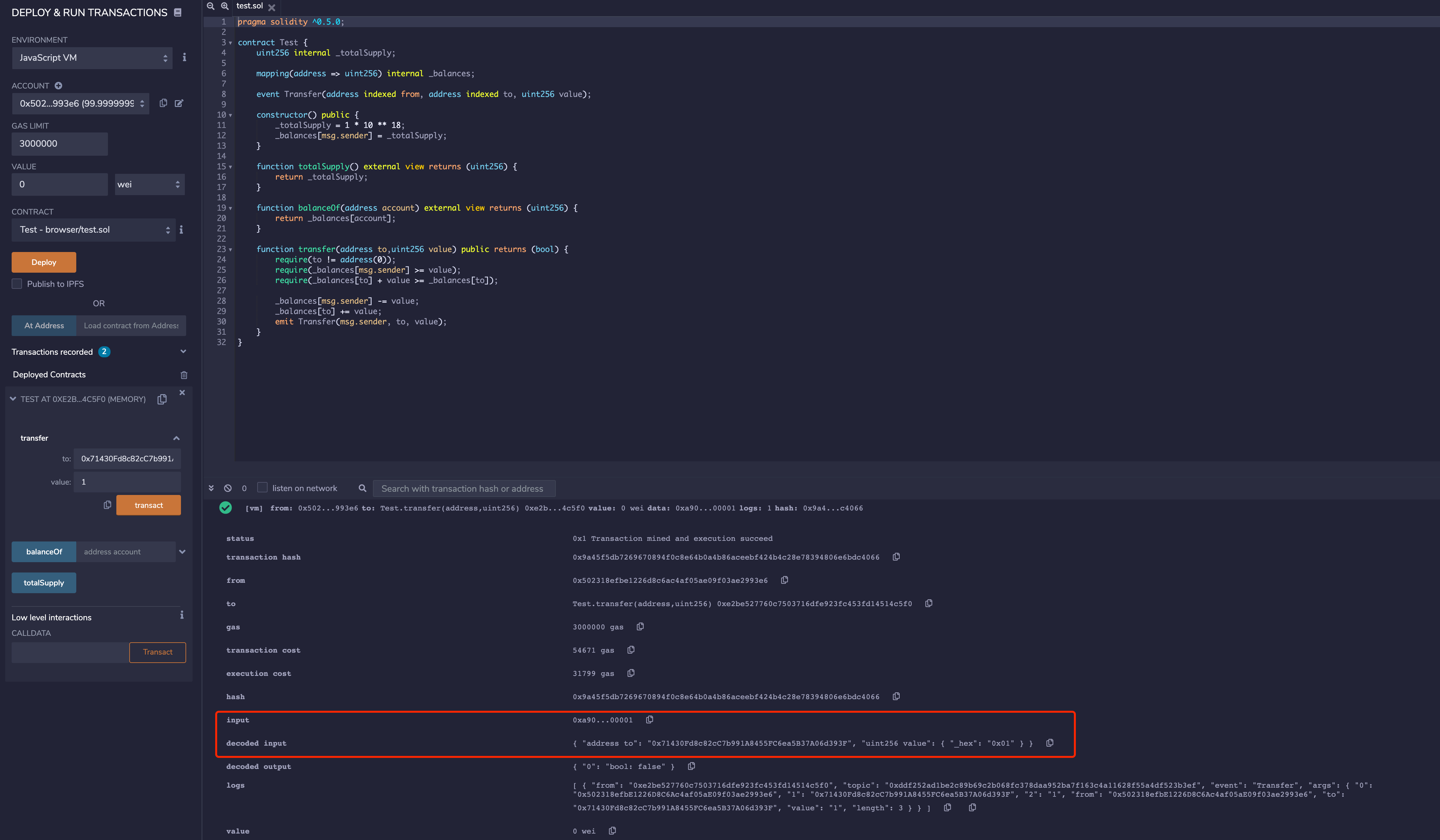 remix部署,调用transfer发起正常的转账