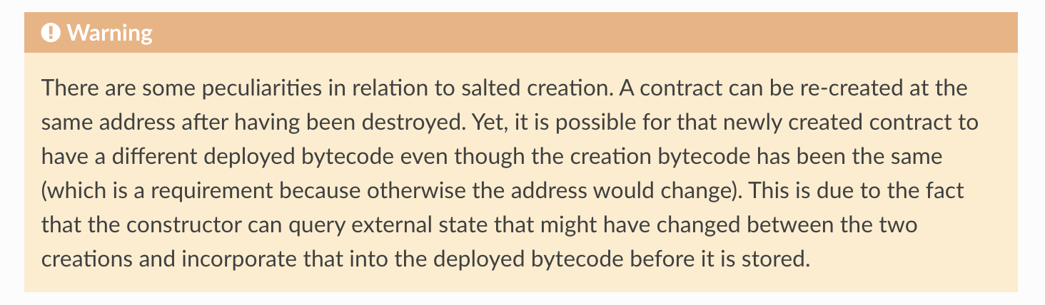 最近 Tornado Cash 遭到 DAO 治理攻击,攻击者通过 CREATE/CREATE2 技巧,先构造了看似正常的带自毁功能的提案合约,在提案通过后自毁,然后在同一地址上重新部署了新的恶意代码合约,从而实现治理攻击